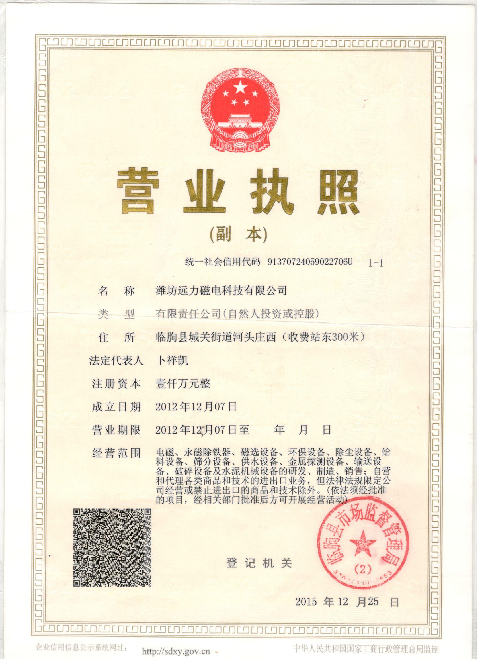 濰坊遠力磁電科技有限公司專業生產除鐵器,電磁除鐵器的廠家,是集永磁除鐵器,永磁滾筒,磁選機,除塵器,尾礦干排科研開發(fā),工程設計,生產安裝,調試服務于一體的磁電設備生產企業。